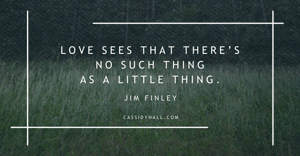 “It’s not measurable,” I remember Finley reminding me. And yet, “Love sees that there’s no such thing as a little thing,” I remember.